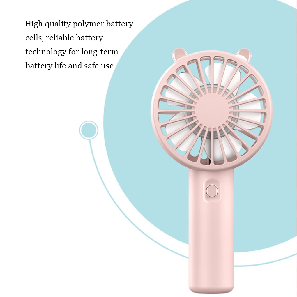Description: Durable: The handheld fan is designed with a no-foldable handle for preventing the handle from being broken, which is durable and sturdy. Battery: The battery fan is operated by a 300mAh rechargeable battery with high performance and efficiency. Wide Use: You can bring this handheld mini hand fan for stroll, shopping, or other outdoor activities without worrying about the battery. Work While Charging: The handheld portable fan is able to continue work when it connects with a power supply. Place into the base, it can become a normal hand desk fan. Portable: The fan is designed with a portable weight and mini size, easy to carry and store for you.